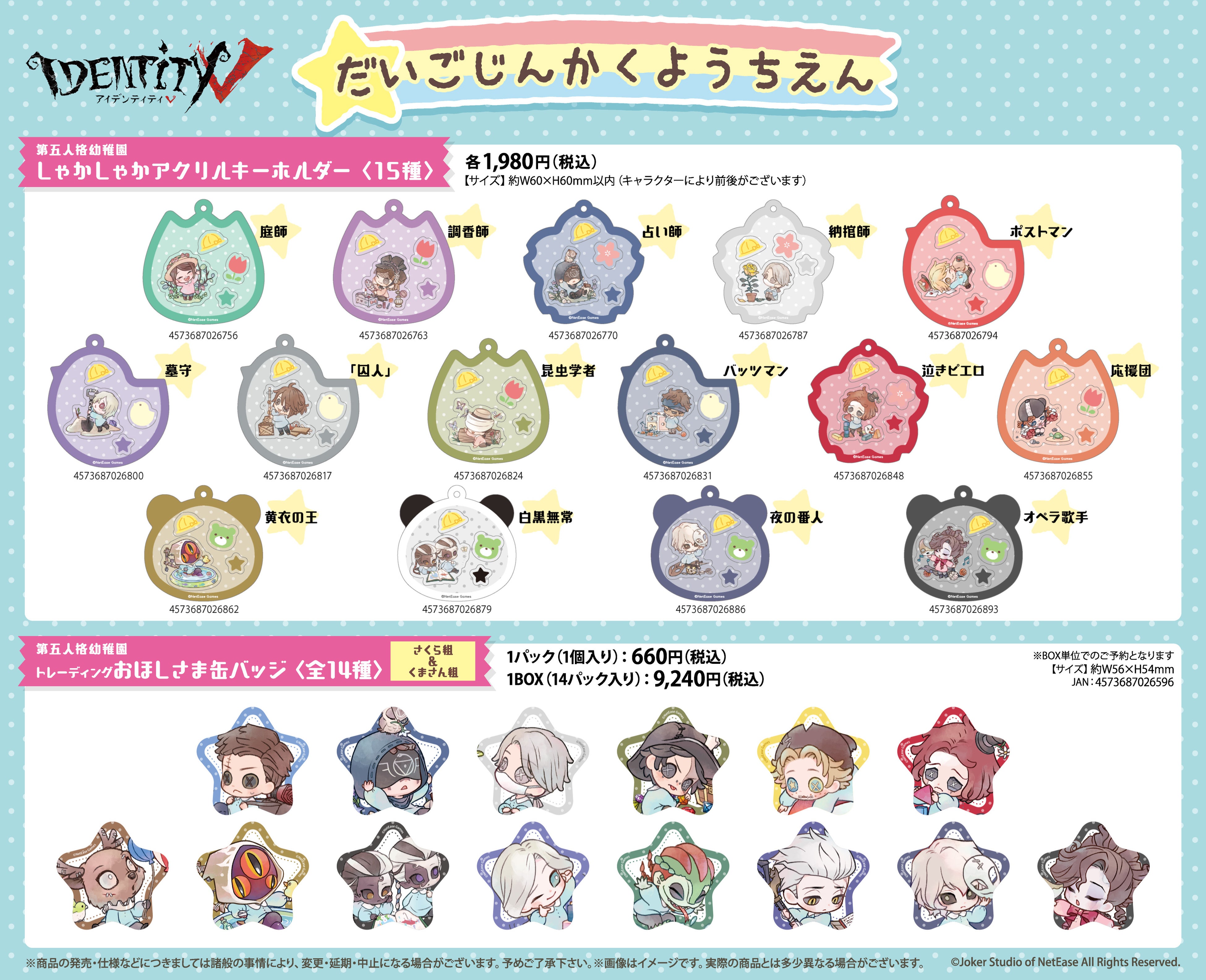 ・第五人格幼稚園 トレーディングおほしさま缶バッジ さくら組&くま組