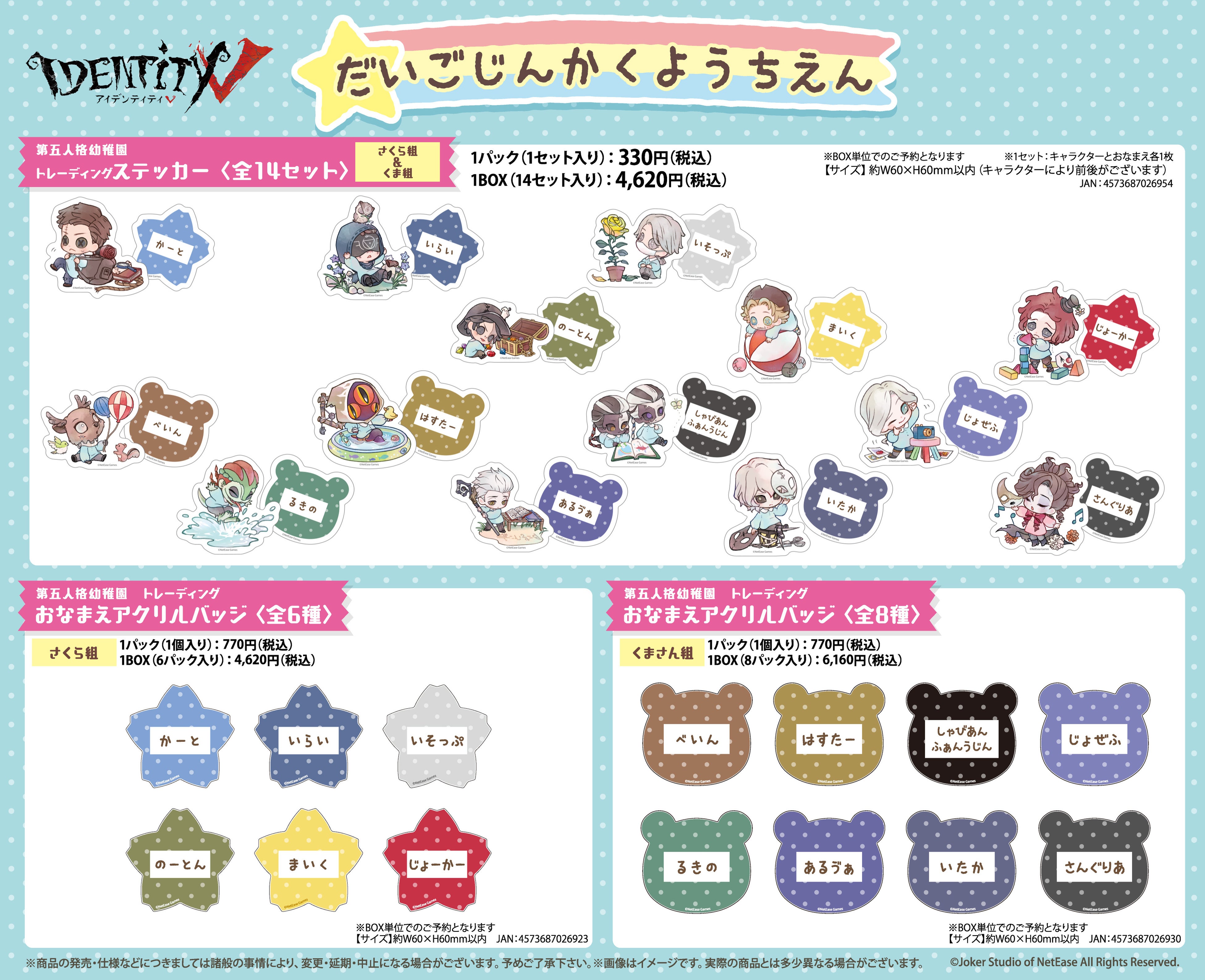 ・第五人格幼稚園 トレーディングステッカー さくら組&くま組