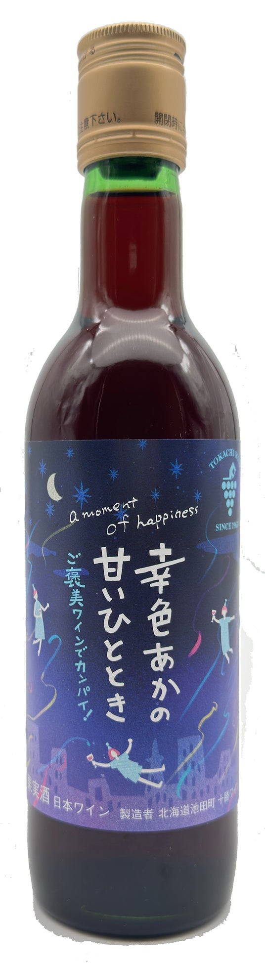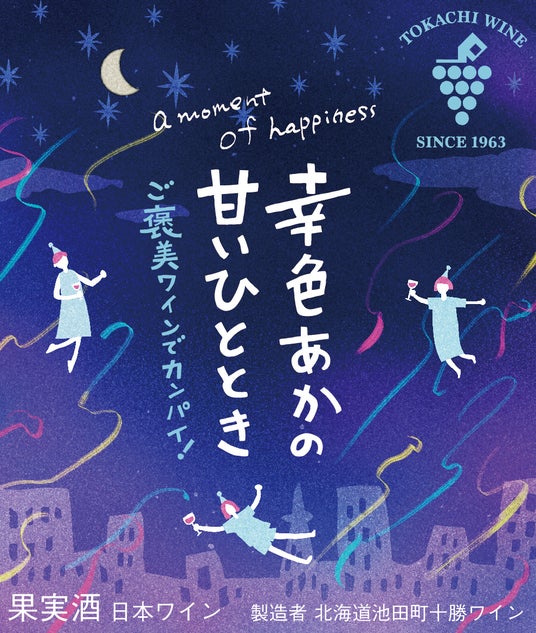 ラベルには色とりどりのパーティー用テープが舞い散る星空をモチーフに採用。「舞い上がってしまうようなような幸福感のある味わい」を浮遊するキャラクターで表現しています。