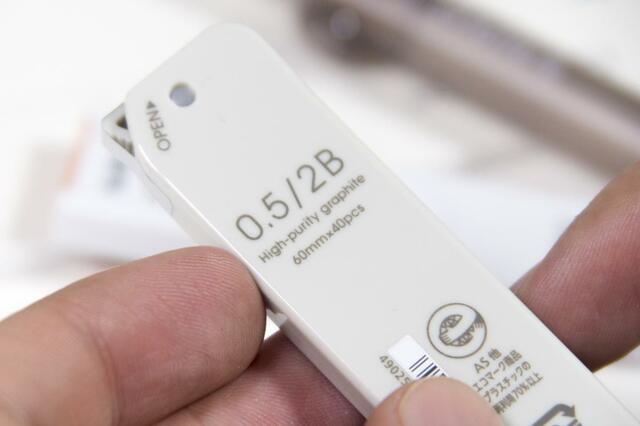 購入時からHBの芯が40本入っていて、パッケージには「50本以上芯を入れないでください」と注意書きがありました。