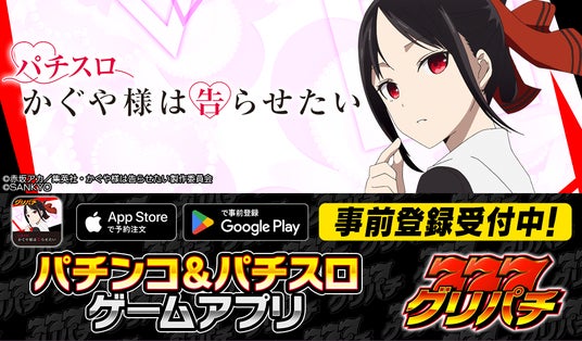 スマートフォンゲームアプリの企画開発・サービスを手がけるコムシード株式会社(本社:東京都千代田区、代表取締役社長CEO:塚原謙次、証券コード:3739、以下コムシード)は、ソーシャルゲーム「グリパチ」において、株式会社SANKYOの人気スマスロ機種『パチスロ かぐや様は告らせたい』のAndroid版およびiOS版アプリを2026年2月19日(木)より一般配信することを決定し、本日、各アプリストアで事前登録を開始いたしました。