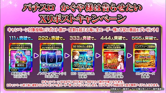 配信決定記念『パチスロ かぐや様は告らせたい』の専用アイテムプレゼントキャンペーン
