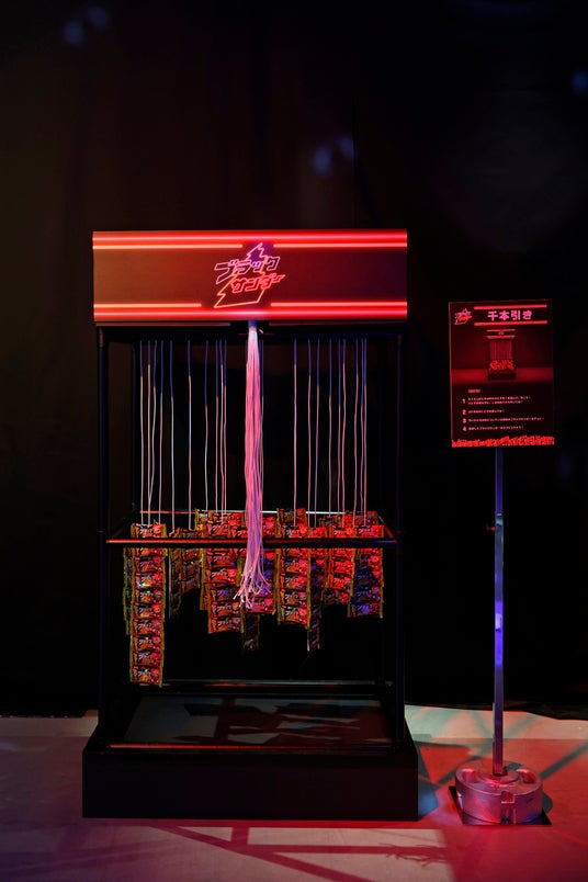 たくさんの紐の中から1本を選んで引く、ドキドキ感満載のゲームです。引いた紐の先にはブラックサンダーが付いており、結果によって獲得できる個数が変わります。何個もらえるかは引いてからのお楽しみです。