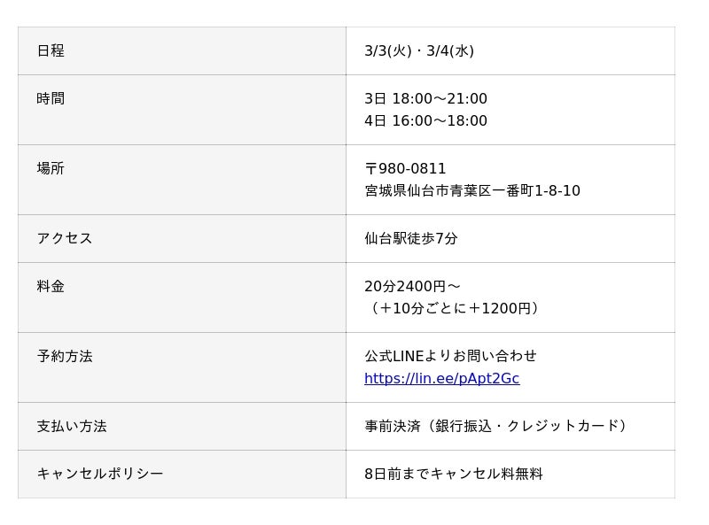 占い師養成CAMPは毎週オンラインで説明会を行っておりますが、このたび仙台校で直接個別説明会を行います。