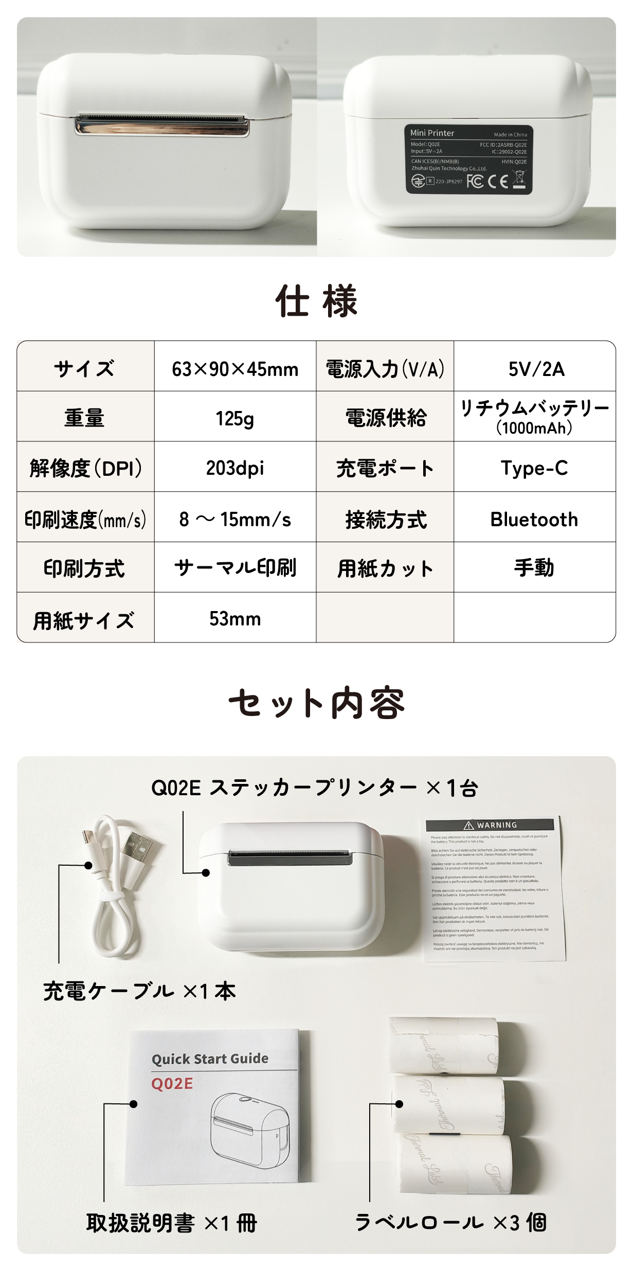 Q02Eは感熱式のため、インク交換が不要。思い立ったタイミングでサッと印刷でき、日常使いにピッタリです。