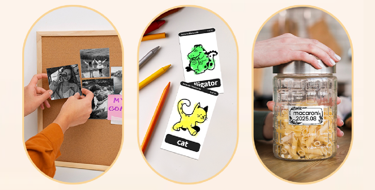 ラベルはもちろん、写真・イラスト・QRコードなども印刷可能。家の収納ラベルから、仕事の書類管理・整理に至るまで、活用シーンが広がります。