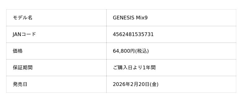 株式会社伊藤屋国際は、Hi-Fiオーディオブランド、EarAcoustic Audio(イヤーアコースティックオーディオ)のGENESIS Mix9を2月20日(金)より販売開始いたします。