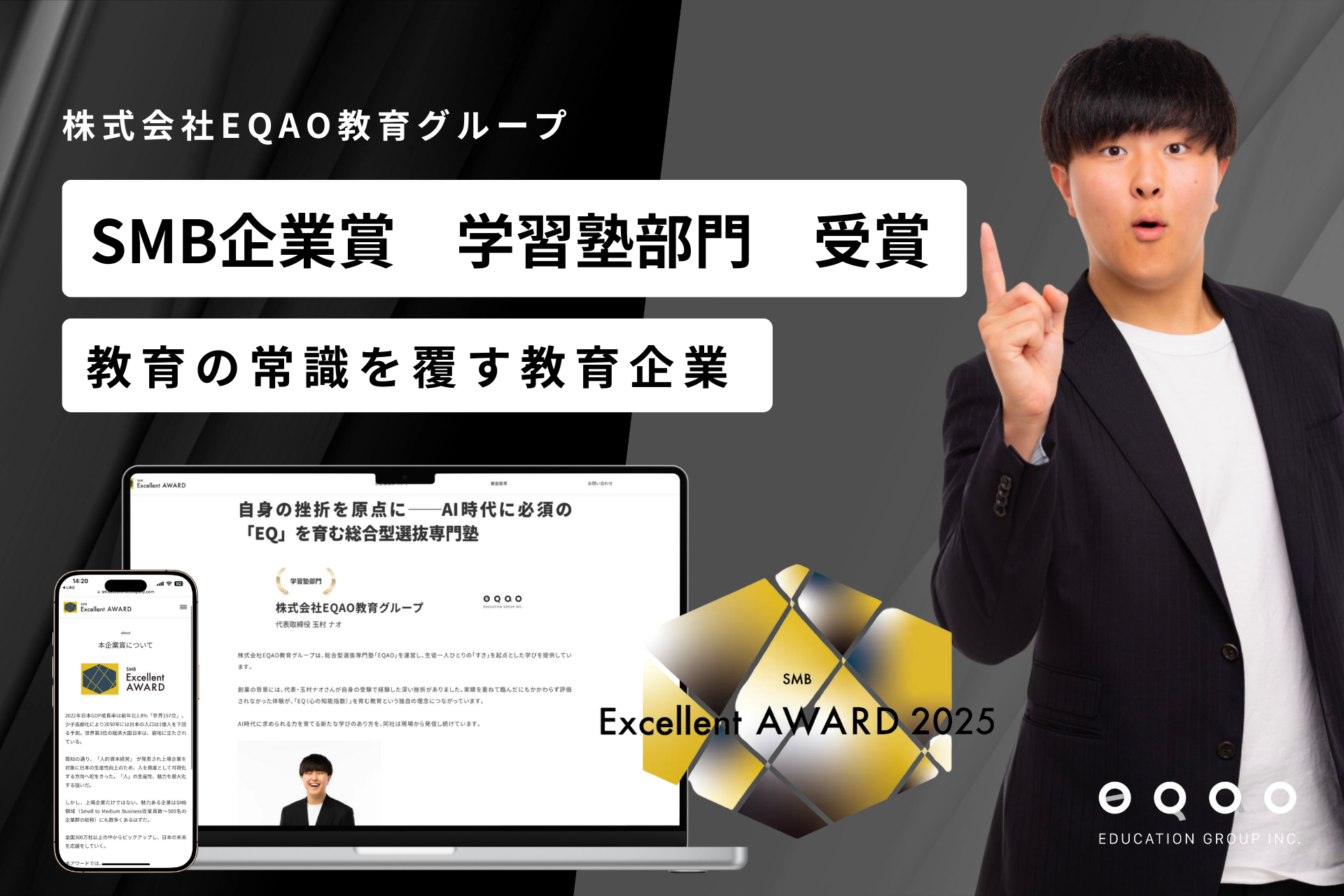 中小・ベンチャー企業の独自性や人的資本、社会課題への取り組みを評価する「SMBエクセレント企業賞」学習塾部門において、全国の企業・学習塾の中から総合型選抜専門塾EQAOがノミネートされたことをお知らせいたします。