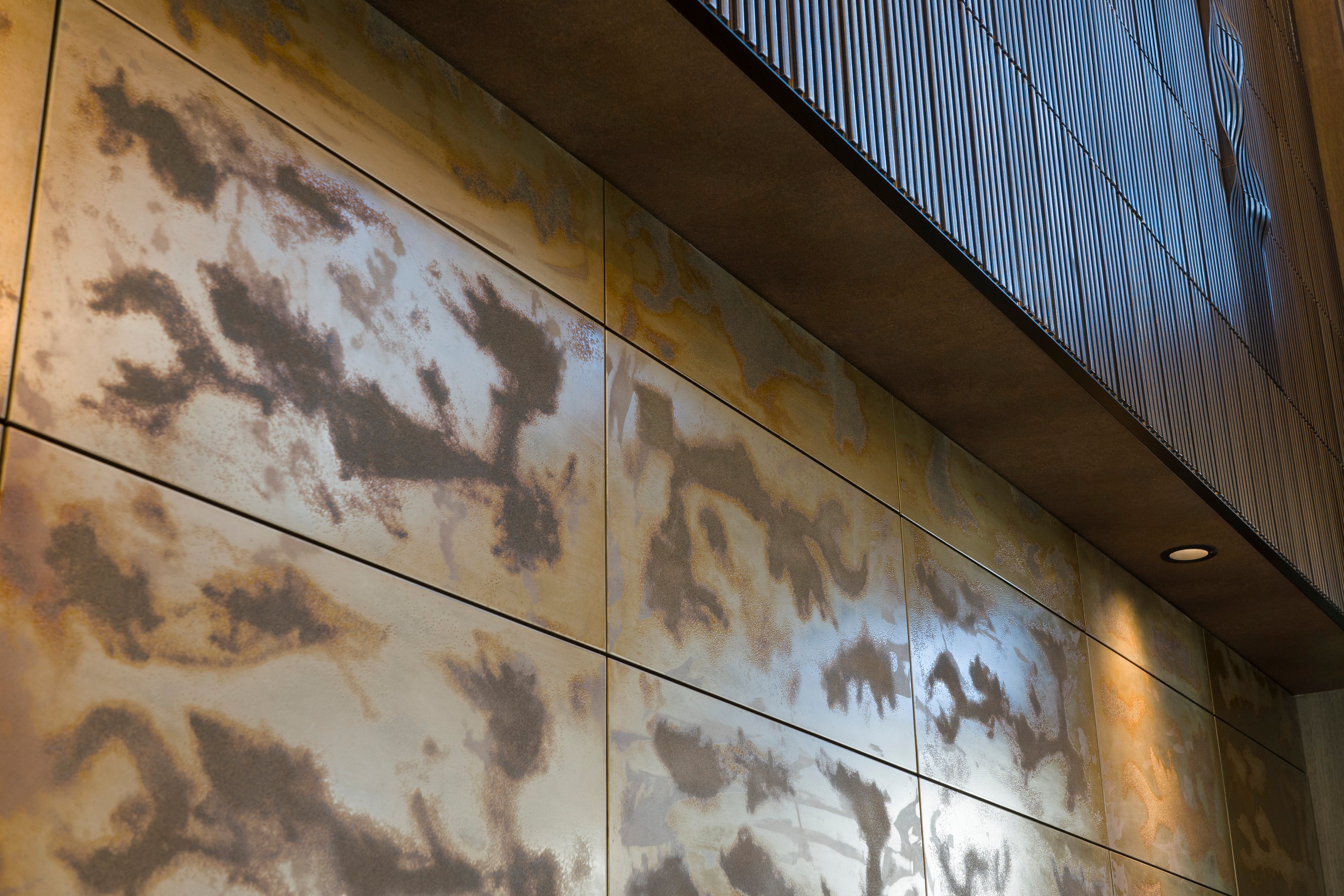 クラック仕上げによる12枚のパネル(エントランス壁面)