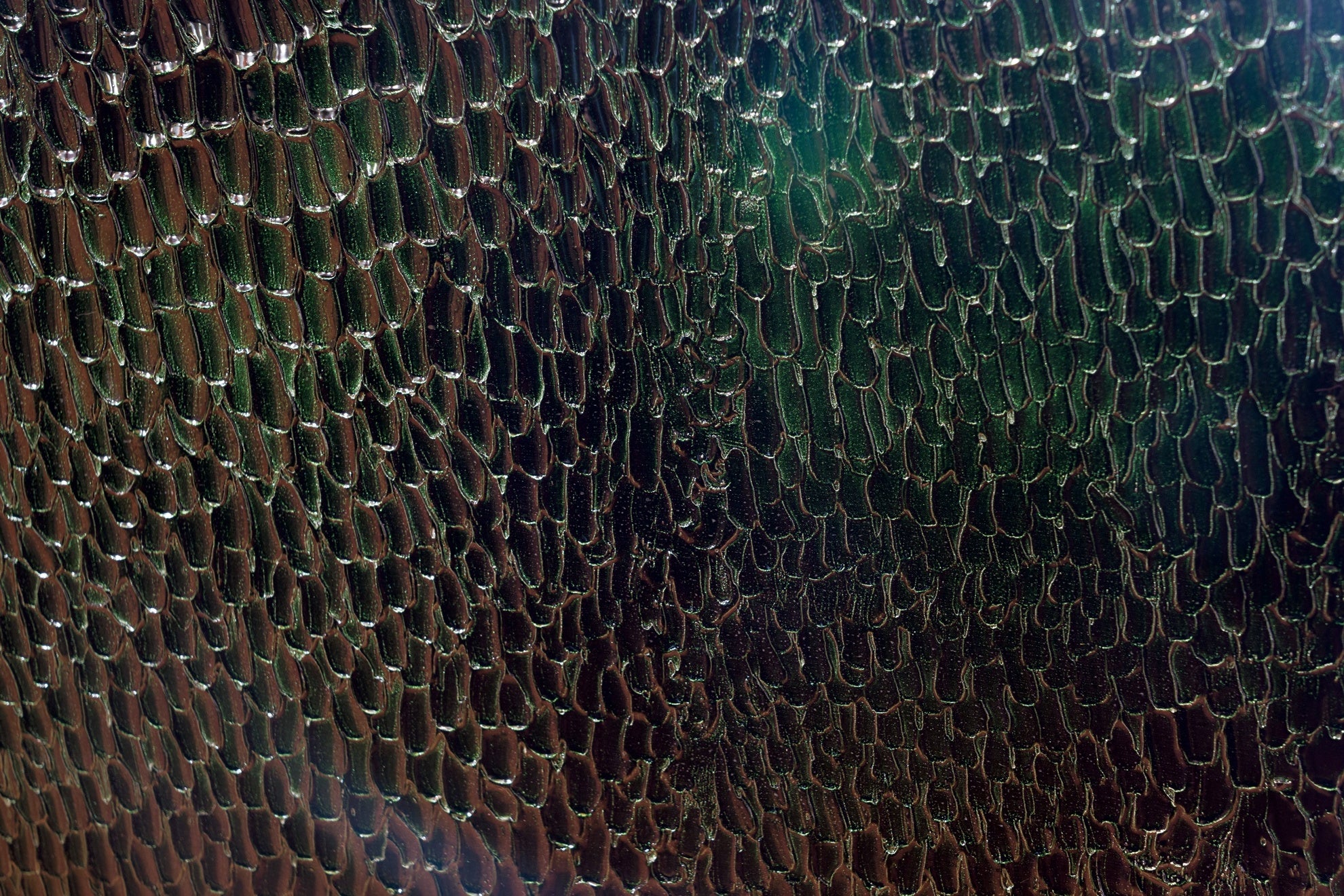 それらの箇所では、72枚の漆塗りパネルや、金属粉を用いた手法、タンパク質による化学反応を用いたクラック仕上げなど、複数の技法を使い分けた表現がなされています。