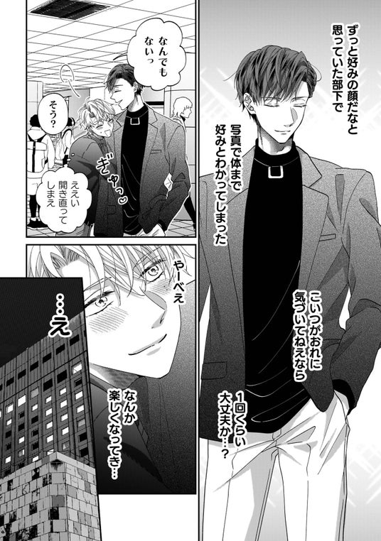 夜はマッチングアプリで仕事のストレスを発散し性欲にまみれた最高の日々を謳歌していた。そんなある日、マッチング相手として現れたのは自分の部下である一条誠志郎。逃げてしまおうかと思った柚月だが、一条の顔も体も――“好み”!