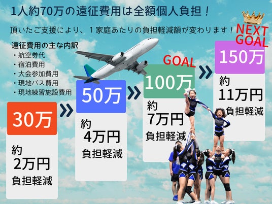 今回のプロジェクトで集まった支援金は、1名約700,000円の遠征費用の負担軽減を目的として使用いたします。