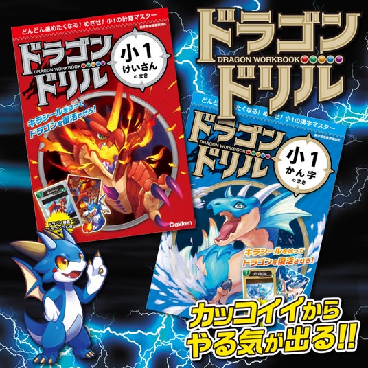シリーズ累計発行部数100万部を突破した、すべての“かっこいいもの好き”の子どもたちに贈る小学ドリルシリーズ。1回分の勉強を終えるたびにシールを貼っていくと、教材の域を超えたクオリティの超絶かっこいいドラゴンが姿を現します。小学1~4年生向けの全18巻が発売中。ファンの方々の声にお応えして発売開始した読み物や、国語辞典も大好評。ドリルや書籍の詳しい情報は、以下のドラゴンドリル公式ページからご覧ください。