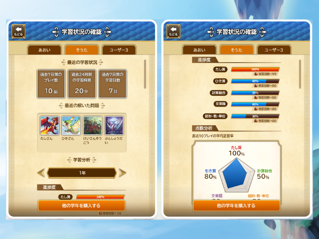 ▲3人までユーザーを設定できるので、きょうだいでの学習もしっかり管理!