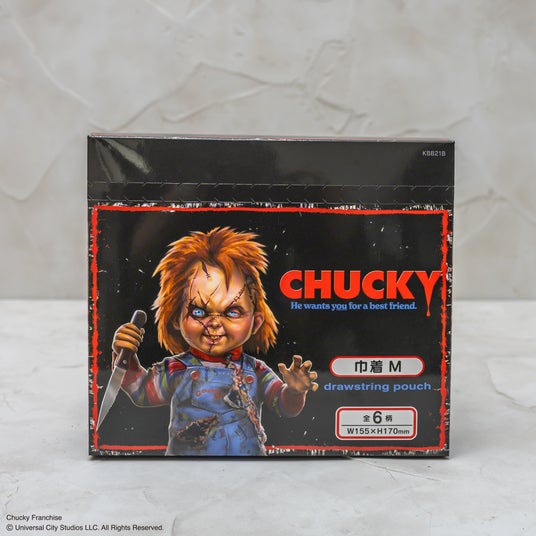 ホラー映画の金字塔から「チャッキー」のアートを使用した日本製コットン巾着。シークレットを含む全6種のデザインで、コレクション需要と日常使いの両方に応えます。