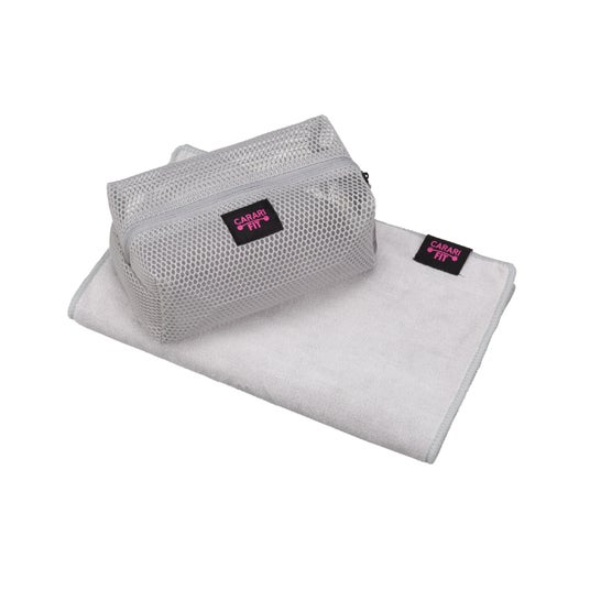 驚きの吸水力、綿タオルの2.4倍。乾きやすいメッシュケース付き