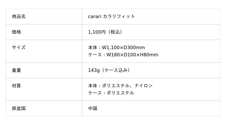 カラリフィットは、110cm×30cmのスリムロングサイズ。