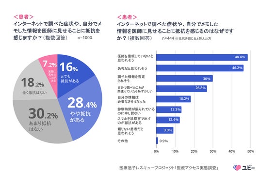 - 患者は準備した情報を見せることに4割以上(44%)が抵抗感。「医師のことを信頼していないと思われそう」と遠慮