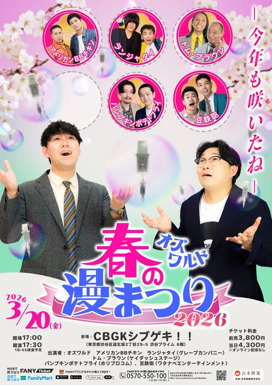 会場:CBGKシブゲキ!!(東京都渋谷区道玄坂2-29-5ザ・プライム6階)※全公演共通【オズワルド 春の漫まつり2026】