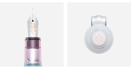 ペン先と蓋栓飾りにも八重桜のモチーフをあしらい、春を待つ季節に合わせた、うららかな一本に仕上げました。