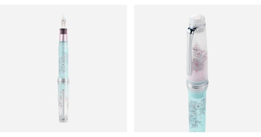フルカラーの八重桜デザインをプリントした限定のコンバーターも同時発売。インクを入れることで背景の色が変わり、イラストがより際立ちます。