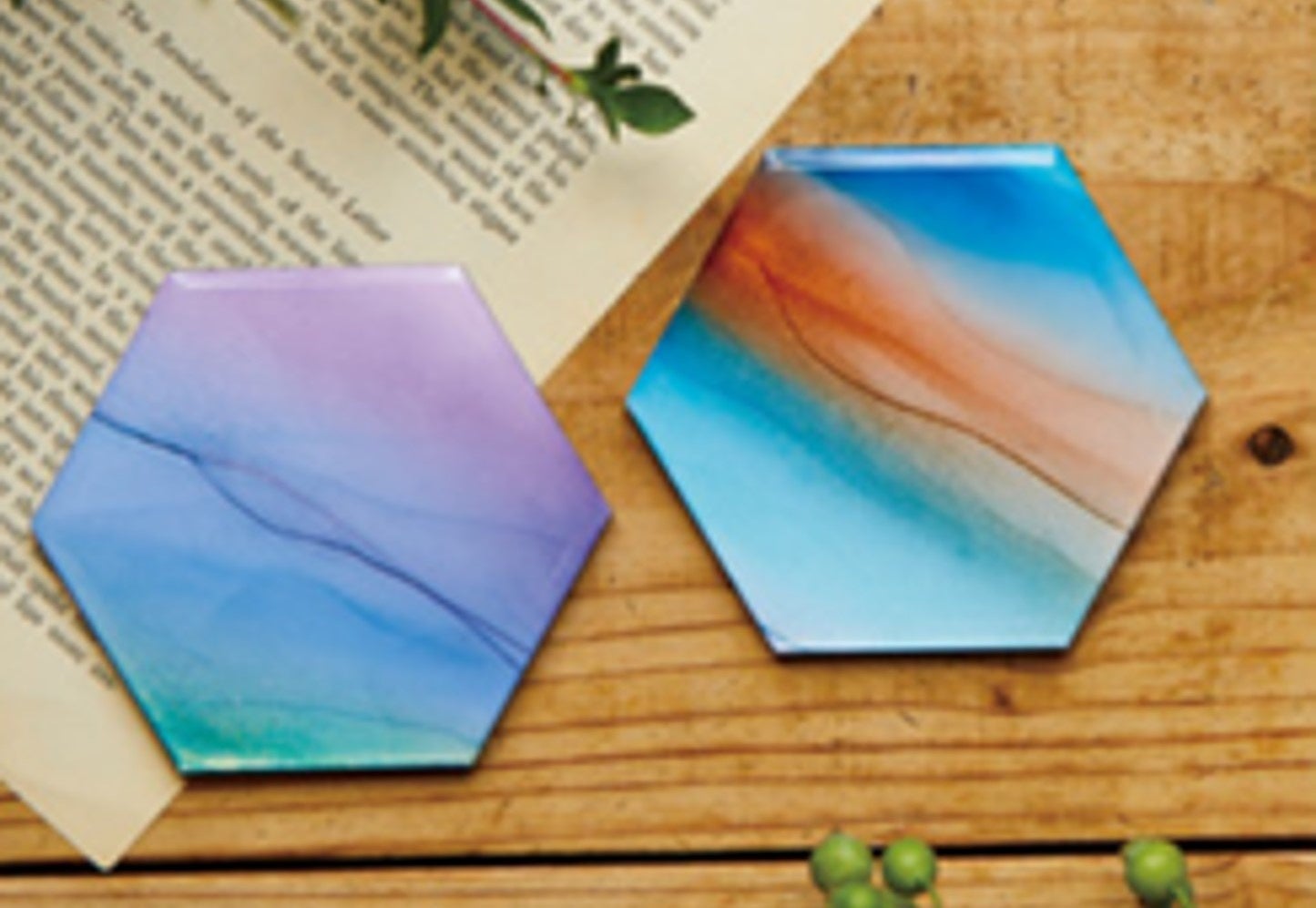 アルコールインクを垂らし、インクの広がりやにじみ、色の混ざり合いから偶然できる模様を楽しむアートです。風の力で自由に描くアートで様々な表現を楽しめます。