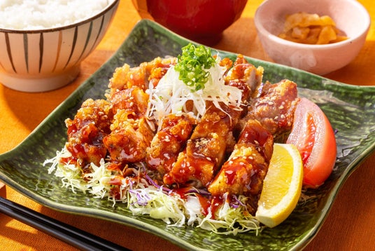 もも肉は特製の竜田だれに漬け込み、ジューシーで食べごたえのある仕上がりに。コチュジャンをベースに、にんにくと醤油を加えた甘辛コクだれをたっぷり絡め、コク深い甘さとほどよい辛味が広がります。たっぷりの甘辛だれとキャベツで、ごはんが進むやみつきチキンです。