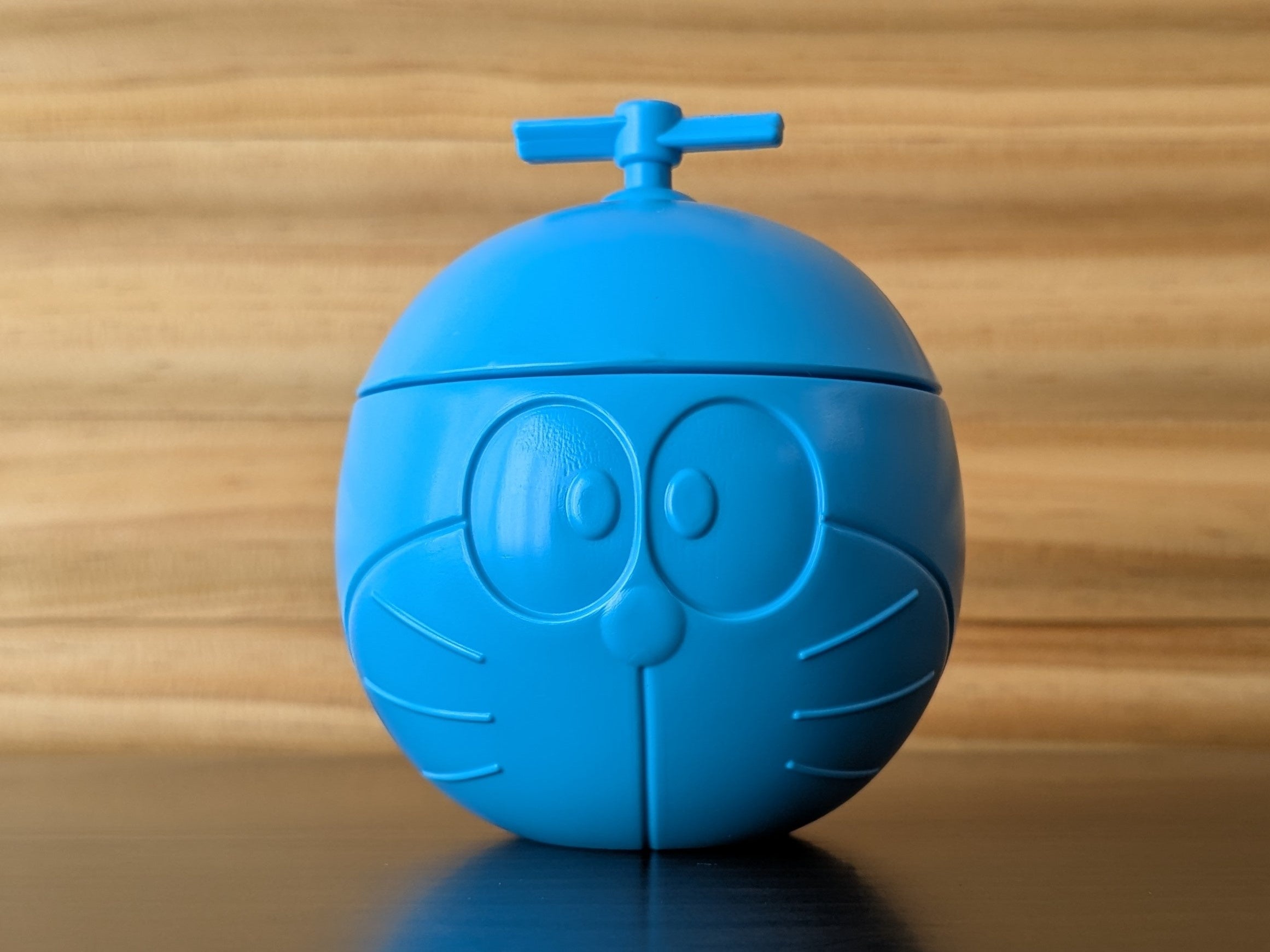 容器自体にも凹凸で「ドラえもん」の顔を表現