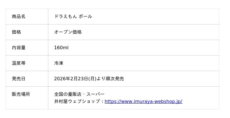 井村屋株式会社(本社:三重県津市高茶屋七丁目1番1号、社長:岩本 康)は、昨年リニューアル発売した人気アイス『ドラえもん ボール』を、今年も2026年2月23日(月)より数量限定で順次発売します。