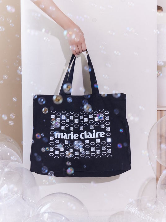 全面に散りばめたグラフィックと「marie claire」ロゴがコーディネートのアクセントとなり、A4サイズもすっきり収まる実用的なサイズ感を備えています。