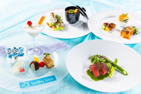 東京ディズニーシー・ホテルミラコスタとディズニーアンバサダー(R)ホテルでは、2026年4月8日(水)から6月30日(火)の期間、東京ディズニーシー25周年“スパークリング・ジュビリー”をテーマにしたスペシャルメニューをご用意します。これまでの感謝の想いを込めたスペシャルメニューとともに、大切な人と一緒に特別なひとときをお楽しみください。※スペシャルメニューは、店舗によって提供期間が異なります。