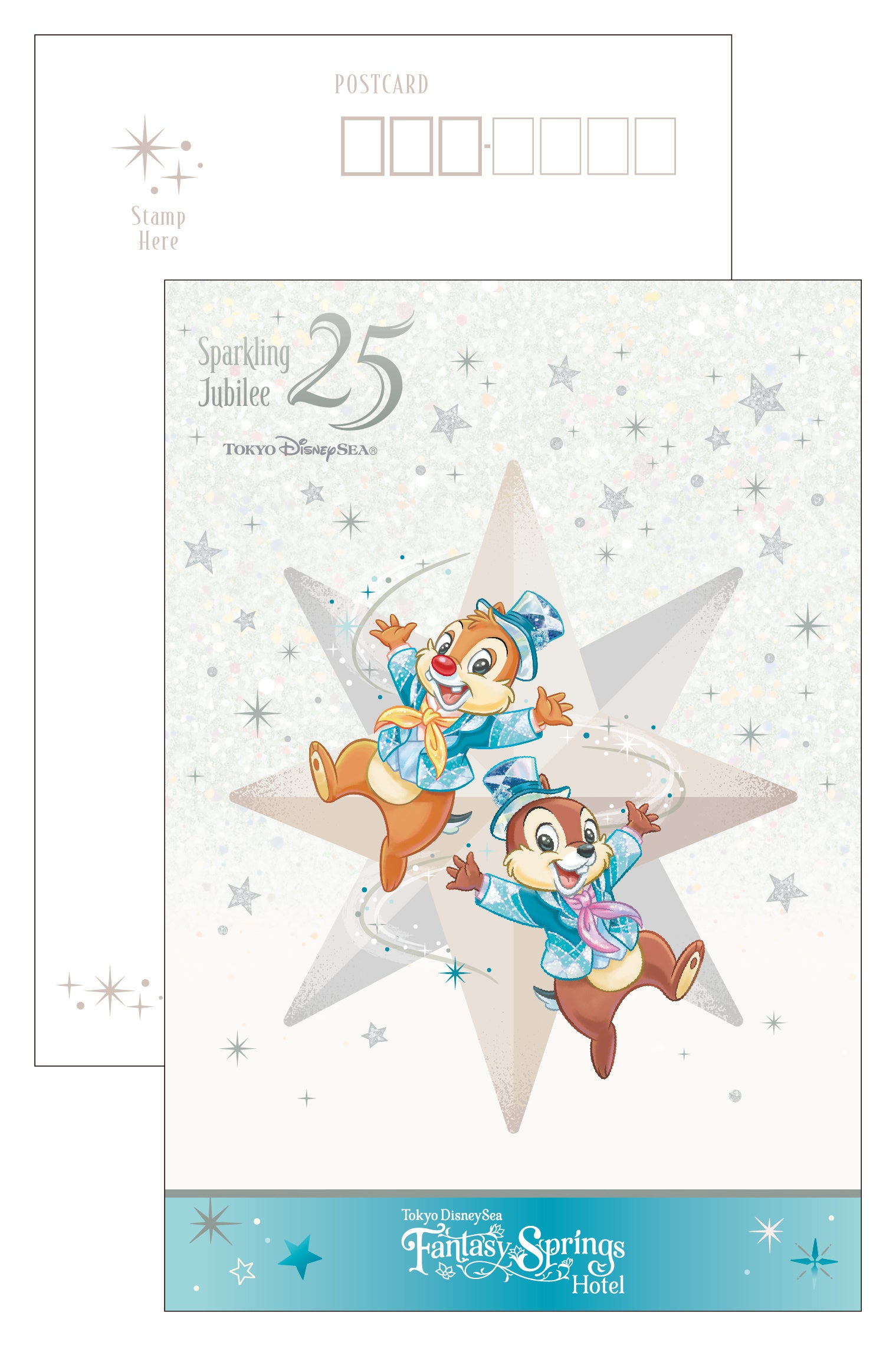 東京ディズニーシー・ホテルミラコスタ、東京ディズニーシー・ファンタジースプリングスホテルへご宿泊の方は、ジュビリーブルーの衣装に身を包んだディズニーの仲間たちが描かれたオリジナルデザインのカードキー&キーケースをご購入いただけます。また、客室には滞在の記念にお持ち帰りいただけるデザインの異なる2種類のポストカードを1室につき2枚ずつご用意します。特別な滞在の想い出として、オリジナルグッズを手に入れてみてはいかがでしょうか。