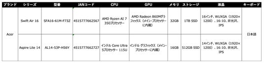 両製品は、Acer公式オンラインストアおよびAcerダイレクト各店、ならびにAmazonにて販売いたします。発売日は、Swift Air 16が2026年2月13日、Aspire Lite 14が2026年2月16日を予定しています。
