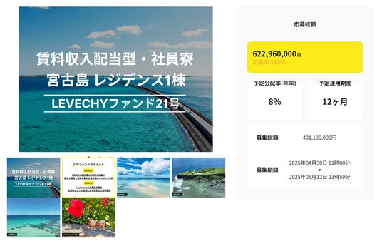 1万円から始める賢い資産運用「LEVECHY(レベチー)」を展開する株式会社LEVECHY(所在地:東京都港区赤坂、代表取締役:高 将司)は、2026年2月13日(金)に「LEVECHY」の第21号ファンドである「LEVECHYファンド21号」の償還及び配当が完了したことをお知らせいたします。
