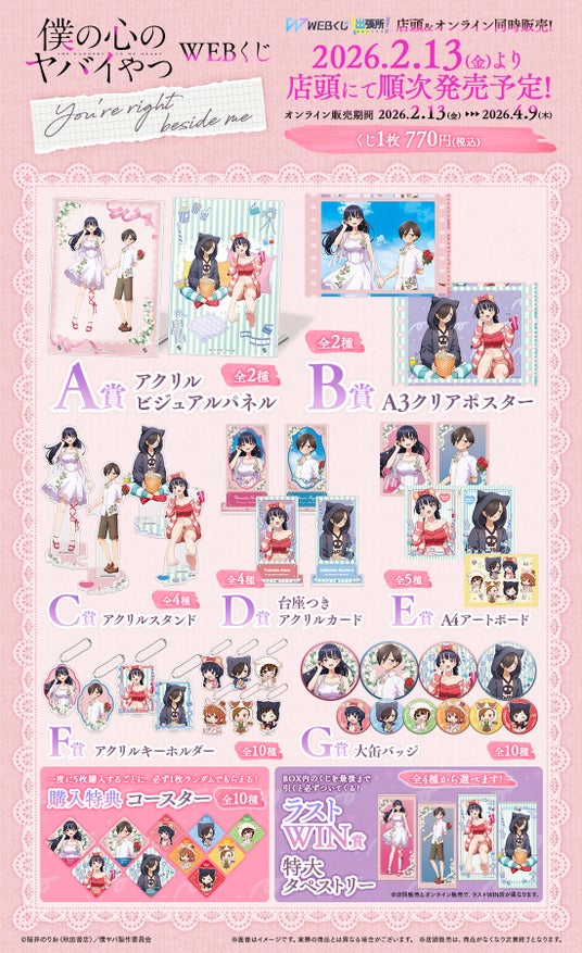 2026年2月13日より、「僕の心のヤバイやつWEBくじ第2弾~You’re right beside me~」の販売を開始いたしました。