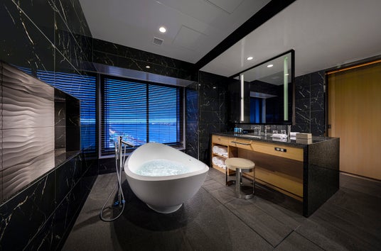 江戸琳派を現代によみがえらせたような華麗な迎賓の空間に身を委ねて至福のひとときをお過ごしいただけます。大きな窓からは旅情をそそる空港と美しく聳える富士山の景観。寝室には優しい眠りに誘う2つのキングサイズベッド。心ゆくまでメイクアップができるダブルシンクのパウダールーム。リビングにはIHヒーターを備えております。開放的なビューバスが癒しの時間をさらに上質なものに。それぞれの空間で、自宅のように滞在できます。