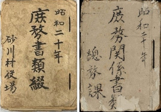 昭和20年(1945)の砂川村と立川市の公文書(立川市歴史民俗資料館蔵