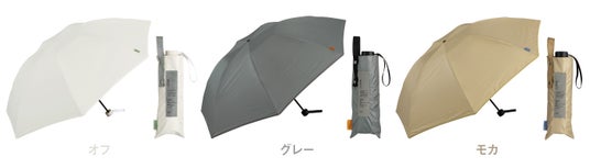 どちらの傘も、UVカット率100%・遮光率100%・UPF50+の生地*を使用。はっ水加工も施されているので雨の日でもお使いいただける晴雨兼用です。