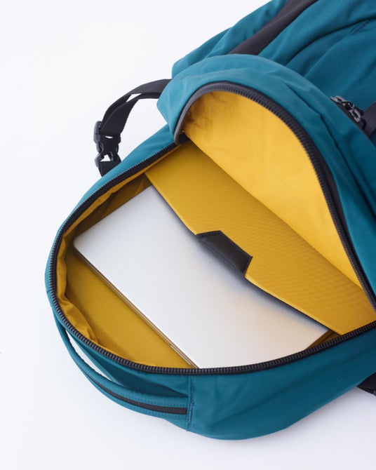 今季リニューアルした“NEW”ペッパーロックシリーズは、この「Pepper Rock Advance」に採用されている背面構造を標準装備。これにより、快適性が大幅に向上しました。背面ウエスト部分は身体にフィットしやすく、動きに自然に追従する形状を採用しています。さらに、取り外し可能なウエストテープを備え、荷物の量や使用シーンに応じて柔軟に活用できます。全体の構造、フォルムも見直し、ボトムに丸みをもたせることで背負ったときのシルエットがよりスマートでクリーンな印象になりました。メインコンパートメントには15インチ対応のPCスリーブを搭載し、大型画面のデジタルタブレットを入れても安心して持ち運べるように従来モデルより固めのメッシュスリーブにアップデートしています。