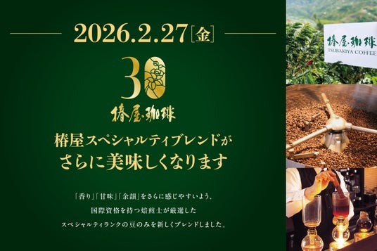 東和フードサービス株式会社(本社:東京都港区/代表取締役社長CEO:岸野 誠人)が運営するスペシャルティコーヒーにこだわった「椿屋珈琲」にて、さらに美味しく生まれ変わった「椿屋スペシャルティブレンド」を2026年2月27日(金)よりご提供いたします。