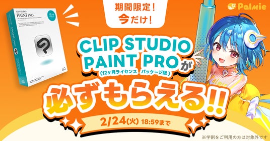 株式会社パルミー(所在地:東京都港区、代表取締役:大野英紀)が運営するパルミーは、本日2026年2月13日(金)12時00分より、CLIP STUDIO PAINT PROが必ずもらえるキャンペーンを開催します。
