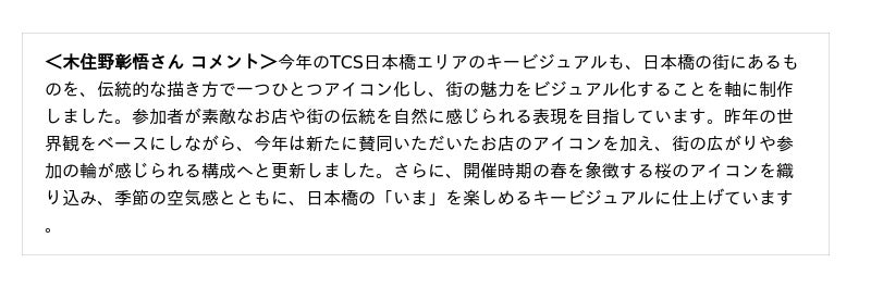 キービジュアルは、昨年に続き国内外のデザイン賞を多数受賞する木住野彰悟さんが手掛けます。日本橋に息づく様々なクラフトをモチーフに、伝統の中に新しさを感じるデザインを約20種類展開いたします。