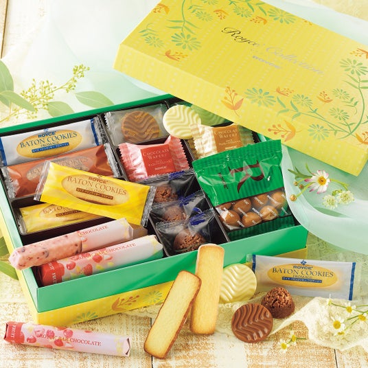 陽だまりに咲くお花をイメージした温かみのある雰囲気のボックスに、バトンクッキーやフルーツバーチョコレートをはじめ、ロイズの人気商品を10種類計66個と、バリエーション豊富に詰め合わせました。大切な方や、いつもお世話になっている皆様へ、たくさんの感謝を込めて贈りたいひと箱です。