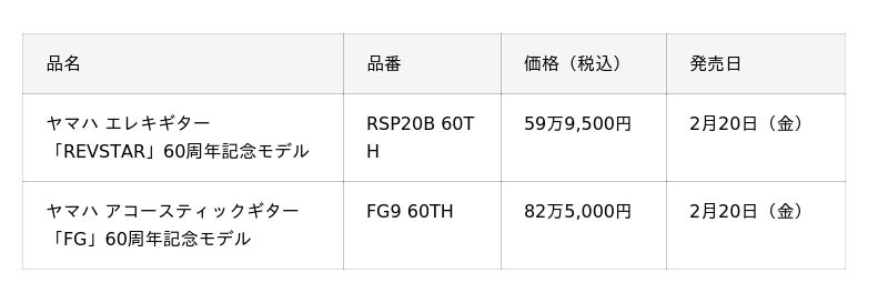 ~60周年記念モデルのエレキギター「REVSTAR」とアコースティックギター「FG」も発売~