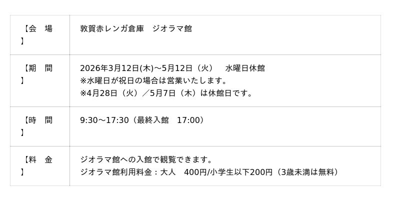 福井県 敦賀赤レンガ倉庫は、2026年3月12日(木)より