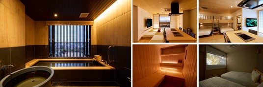 本施設は、あわら温泉の中心にあり、足湯が楽しめる「あわら温泉湯のまち広場」の目の前に建つ、全23室・5階建ての宿泊施設です。北陸新幹線の停車駅であるJR芦原温泉駅からタクシーで約10分の場所に位置し、東京・大阪・名古屋など都市部からのアクセスも良好です。滞在中いつでも自家源泉を堪能できるお風呂や、開放感のあるテラス、広々とした畳スペースで部屋食を快適に楽しめるIHヒーター付きダイニングテーブルを全客室に備え、ゆったりとくつろげるプライベート空間となっています。さらに一部の客室にはサウナや水風呂、大画面スクリーンとプロジェクターを設置しています。定員6名と4名向けに異なる客室をそれぞれ2タイプ用意し、ファミリーやグループからカップル、夫婦での旅行まで、幅広い宿泊スタイルに対応します。