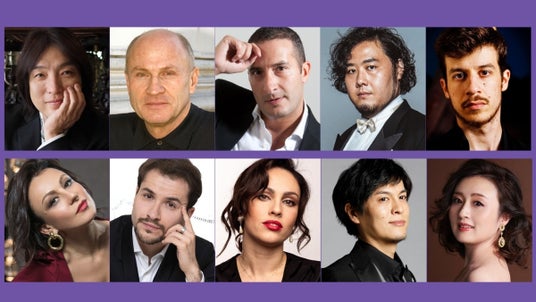 左上より飯森範親、G.アサガロフ、V.プリアンテ、田中大揮、F.レオーネ、I.ルング、D.モナコ、S.コルトレツィス、近藤圭、盛田麻央