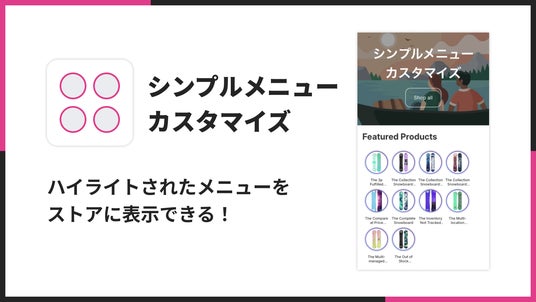 「シンプルメニューカスタマイズ|お手軽アイコンメニュー」は、ストア内のナビゲーションを強化するためのサークル型メニューを簡単に追加できる Shopify アプリです。