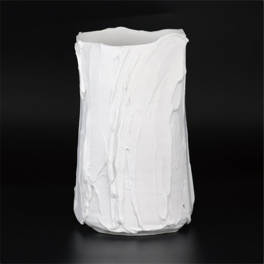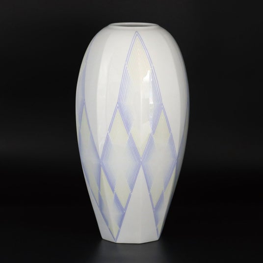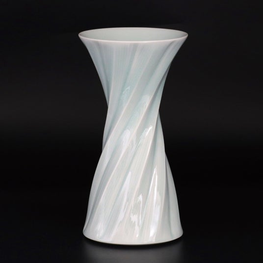 青白磁面取線彫花器(径14×高さ26.5cm)