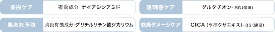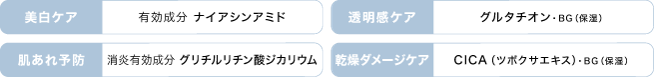 ※1 ツボクサエキス(保湿) ※5 メラニンの生成をおさえ、シミ・そばかすを防ぐ